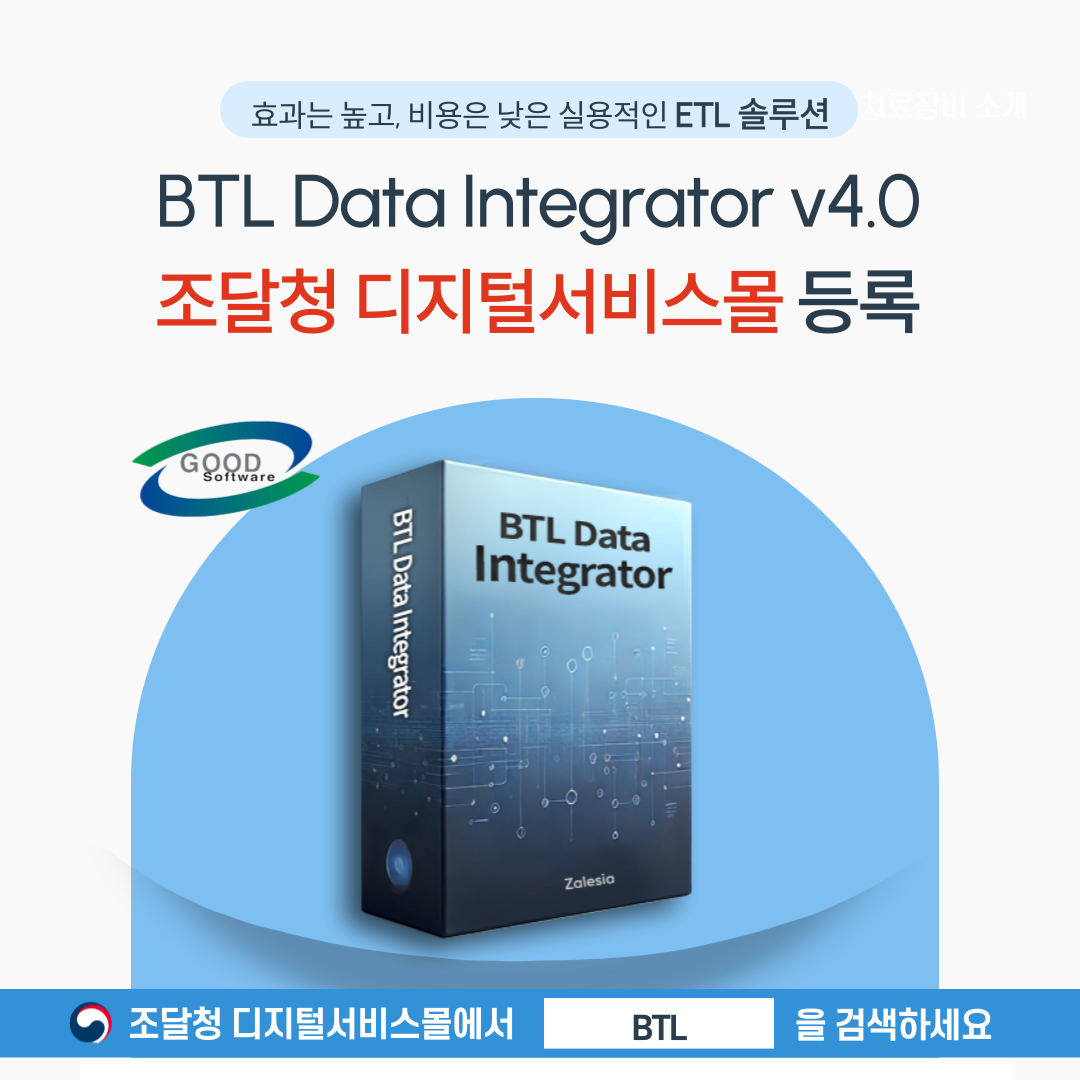 BTL Data Integrator(BTL DI)는 ETL 작업을 직관적인 GUI로 구성하고, 스케줄링 및 모니터링 기능을 통해 운영 상태를 손쉽게 확인할 수 있도록 지원합니다.